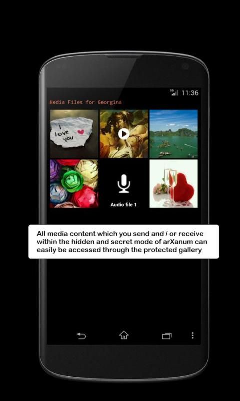 अन्य Apps arXanum के विपरीत आप न केवल इसलिए यह असंभव है कि आप इन ही छिपा हुआ शुभारंभ करेंगे जो एक हॉटकी के माध्यम से सुलभ हो जाएगा (छिपाने के लिए करना चाहते हैं जो सामग्री का उपयोग करने के लिए कर रही है, dfferentiate और सार्वजनिक या छिपा के रूप में अपने एसएमएस और एमएमएस बातचीत का प्रबंधन करने की अनुमति देता है और गुप्त तिजोरी मोड), लेकिन सबसे महत्वपूर्ण यह है कि आप अपने सेल फोन के बिना prying आँखों से छुपाना चाहते सामग्री की मूक प्राप्ति की अनूठी विशेषता प्रदान करता है, यहां तक कि कांपना पर swichting या सभी सार्वजनिक संदेशों के लिए शुरू किया जा करने के लिए जारी रहेगा, जो सामान्य रिंगटोन खेलने हो और सामग्री।