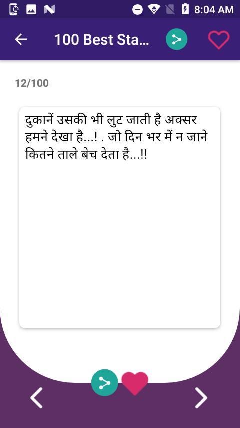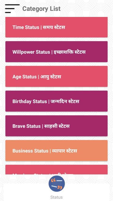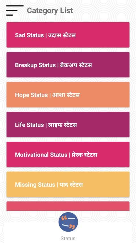 Completely FREE app with latest collection of best Hindi Status and quotes for setting as your status in Hindi