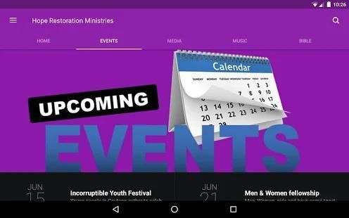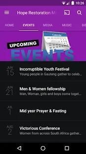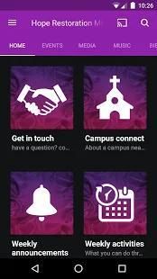 The Hope restoration app, is an exciting digital interactive mobile service that keeps you connected, updated, informed about what's happening at your favourite contemporary church family. This app will keep you up to date on what is happening at hope Restoration Ministries daily, weekly and all year round, with up to date information, sermons(video, audio and notes) from senior Pastors Rev Chris and Ps Phindi Mathebula who lead church for all ages, groups, races and cultures.