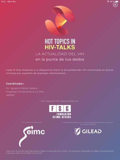 Cada 15 días llevamos a tu dispositivo móvil la actualidad del VIH comentada en pocos minutos por expertos de prestigio internacional.