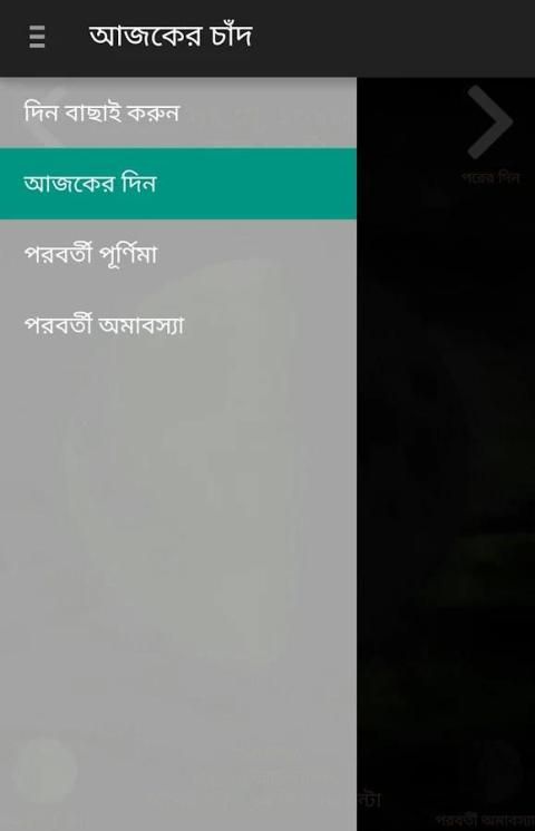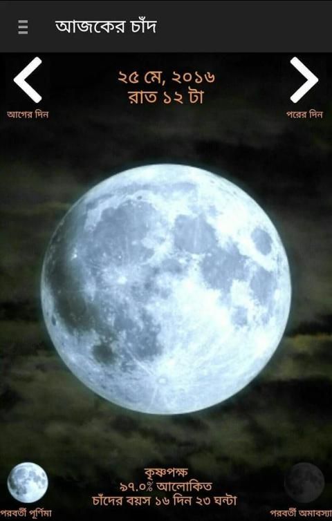 कैलेंडर এর যে কোন দিনে চাঁদের অবস্থা বা বয়স জানতে অথবা আসন্ন পূর্ণিমা বা অমাবস্যা সম্পর্কে জানতে অ্যাপ টি করুন का उपयोग करें।