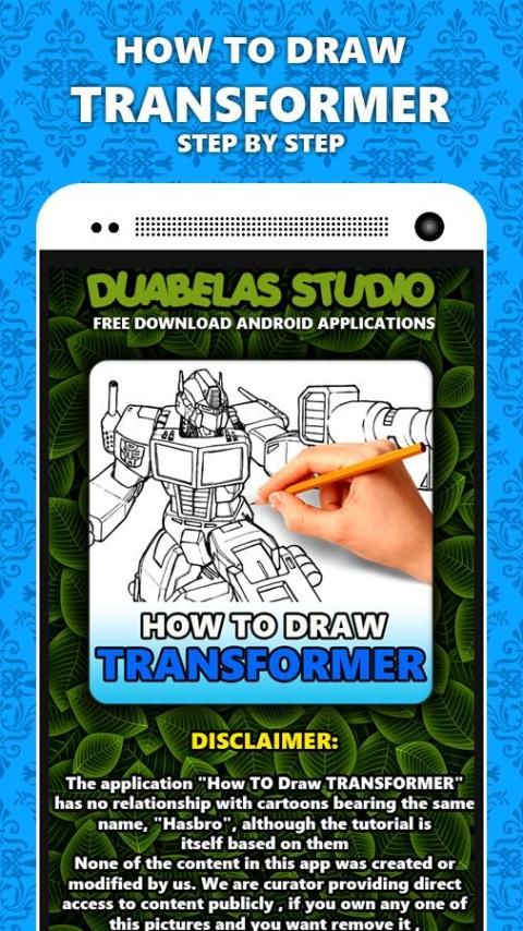 आवेदन "ट्रांसफार्मर ड्रा के लिए कैसे - आराम से", एक ही नाम है, "HASBRO" असर कार्टून के साथ कोई संबंध नहीं है, हालांकि ट्यूटोरियल उन पर आधारित ही है