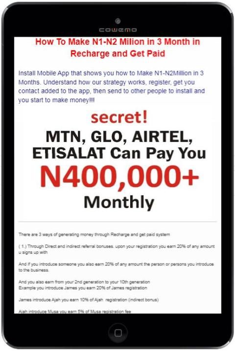 Install Mobile App that shows you how to Make N1-N2Million in 3 Months. Understand how our strategy works, register, get you contact added to the app, then send to other people to install and you start to make money