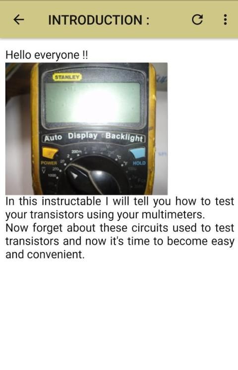 इस एप्लिकेशन को कई जानकारी है कि कैसे एक multimeter.In इस एप्लिकेशन का उपयोग इलेक्ट्रॉनिक components.Usually इलेक्ट्रॉनिक उपकरणों beens परीक्षण परीक्षण आप परीक्षण करने के लिए कैसे PNP ट्रांजिस्टर और NPN.When आप समझ कैसे घटकों आप बेहतर लाभ होगा इस तरह का परीक्षण करने के लिए सीखना होगा करने के लिए है होते हैं इलेक्ट्रॉनिक इंजीनियरिंग पर समझ ...