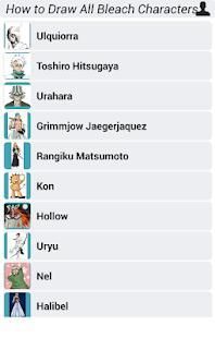 This Apps is a step by step instruction which will teach you How to Draw All Bleach Characters. Like a personal art teacher, it will teach you how to draw dozens of different objects step by step and create amazing design, you can choose a character that you like and start to draw it.