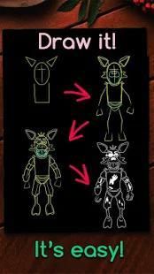 And you like Five Nights, right? If you have no idea what is that - it’s famous horror game where you need to spend five nights with living animatronics in Freddy Fazbear's pizzeria. You need to play it to feel the fear. You’d fall in love with those cute yet deadly dangerous animal toys. And with this how to draw step by step app you’ll be able to draw a portrait of any of them!