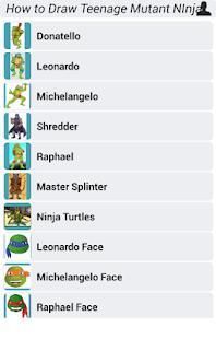 This Apps is a step by step instruction which will teach you How to Draw Teenage Mutant Ninja Turtles. Like a personal art teacher, it will teach you how to draw dozens of different objects step by step and create amazing design, you can choose a character that you like and start to draw it.