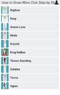 This Apps is a step by step instruction which will teach you How to Draw Winx Club. Like a personal art teacher, it will teach you how to draw dozens of different objects step by step and create amazing design, you can choose a character that you like and start to draw it.