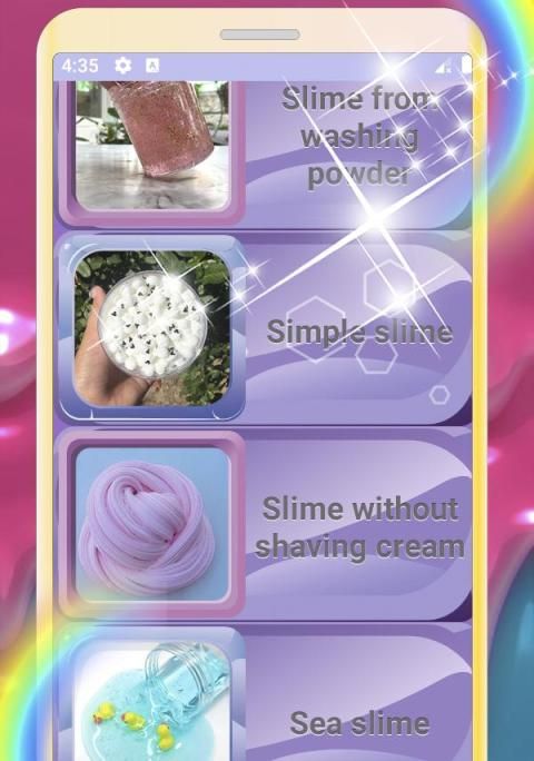 application in which there are many recipes for how to make a slime at home and how to make a fluffy slime. All slime recipes are simple and straightforward to prepare.