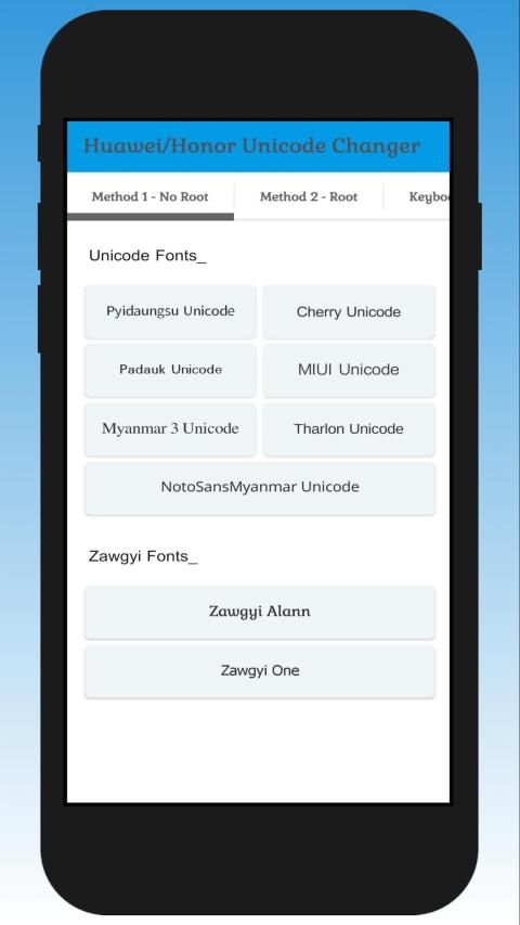 सभी Android संस्करण के लिए EMUI म्यांमार फ़ॉन्ट परिवर्तक।