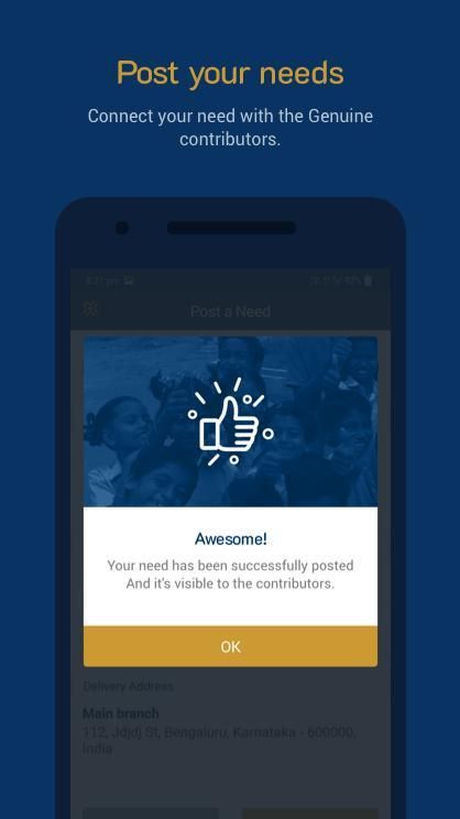 At Humane, we understand the importance of genuine contributions to every need that an NGO posts. With a simple process to post your needs, it takes a few steps to register, post and get started with us. Once you post your need, Humane puts it forth to our ever growing community of contributors. Once your need is fulfilled, we organise to have the contribution picked up and delivered to you. We help you reach out to those who care so that you can take care.