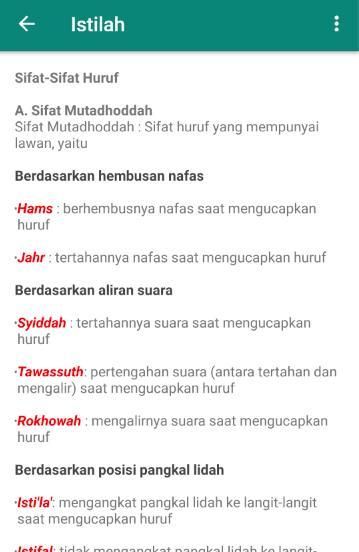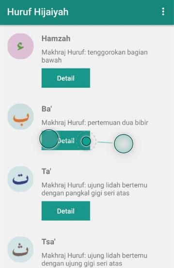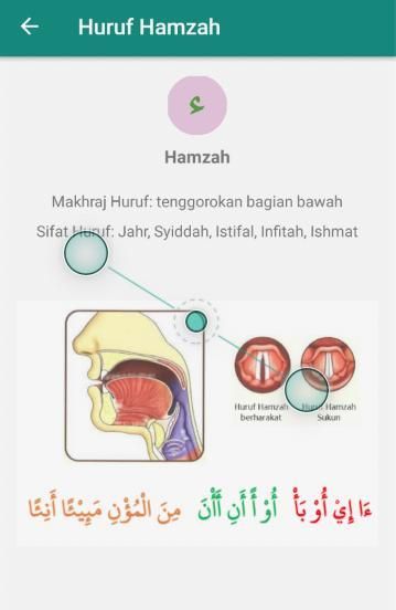 Aplikasi huruf hijaiyah yang disertai makhraj (tempat keluar huruf) dan sifat-sifat yang dimiliki oleh huruf tersebut.