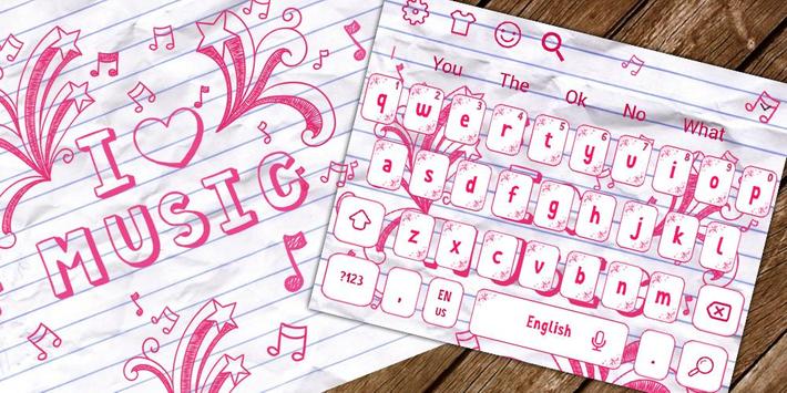 : Beautiful I Love Music Notepad Keypad Theme, cool chatting sms keyboard theme, pink music keyboard theme or glow shiny music notepad keyboard theme or 2018 new keyboard themes, etc. Just choose what you love.