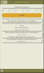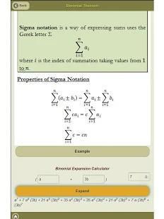 एक कैलक्यूलेटर के साथ उपयोगी पहचान, महत्वपूर्ण आंकड़े में गोलाई, Vieta के सूत्र सीधे लाइन्स, द्विघात समीकरण और असमानता Solvers, द्विघात कार्य कैलक्यूलेटर, Exponents और लघुगणक, घातीय और लघुगणक कार्य, अंकगणितीय दृश्यों और सीरीज एक कैलक्यूलेटर के साथ। ज्यामितीय दृश्यों और एक कैलक्यूलेटर के साथ श्रृंखला। चक्रवृद्धि ब्याज कैलकुलेटर, द्विपद प्रमेय विस्तार कैलकुलेटर गणितीय प्रेरण समारोह रूपांतरण (क्षैतिज अनुवाद, कार्यक्षेत्र अनुवाद, क्षैतिज स्ट्रेच - सिकोड़ें, कार्यक्षेत्र स्ट्रेच - सिकोड़ें, कुछ विचार, निरपेक्ष मूल्य रूपांतरण, पारस्परिक समारोह का ग्राफ) त्रिकोणमिति (त्रिकोणमितीय समीकरणों, त्रिकोणमितीय कार्य, त्रिकोणमितीय पहचान, आदि) त्रिभुज सॉल्वर विभेदन (व्युत्पन्न, विभेदन नियम, व्युत्पन्न टेबल्स, अंतर्निहित विभेदन, स्पर्शरेखा और नॉर्मल्स, स्टेशनरी अंक, मोड़, वक्र स्कैचिंग, च के रेखांकन के अंक (x) और इसकी व्युत्पन्न) एकता (अनिश्चितकालीन इंटीग्रल, निश्चित इंटीग्रल , इंटीग्रल टेबल, एकता तकनीक) एकता (क्षेत्र के अनुप्रयोग एक वक्र और y- अक्ष, दो घटता के बीच क्षेत्र, क्रांति की मात्रा, कीनेमेटीक्स) परिसर नंबर के बीच एक वक्र और x- अक्ष, क्षेत्र के बीच (परिसर नंबर, परिसर conjugates के साथ संचालन , समीकरण, कार्तीय प्रपत्र, ध्रुवीय फार्म, घातीय फार्म, Argand आरेख, मापांक और तर्क, डी Moivre की प्रमेय, परिसर नंबर की जड़ें) वेक्टर, लाइन्स, एक कैलक्यूलेटर सेट और संभाव्यता (सेट, संभावना, सशर्त संभावना, स्वतंत्र घटनाओं के साथ एक कैलक्यूलेटर क्रॉस उत्पाद के साथ एक कैलक्यूलेटर डॉट उत्पाद के साथ कैलक्यूलेटर वेक्टर और अदिश प्रक्षेपण के साथ विमान , Bayes के सिद्धांत) संयोजन, क्रमपरिवर्तन और व्यवस्था कैलक्यूलेटर। सशर्त कैलक्यूलेटर घटना एक होने वाली है, उस घटना बी दिया हुआ है और इसके विपरीत की संभावना गणना करता है। सामान्य वितरण कैलक्यूलेटर द्विपद बंटन कैलक्यूलेटर प्वासों बंटन कैलक्यूलेटर सांख्यिकी और 2 चर सांख्यिकी और गणितीय अध्ययन सामग्री।