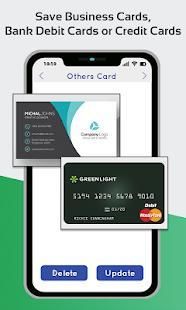 एक बटुआ कि उन सब आप के साथ हर समय ले जाने के बिना अपने सभी कार्ड और पहचान-पत्र एक ही स्थान पर सुरक्षित स्टोर करने के लिए अनुमति देता है। जब भी आप उन कार्ड के किसी भी जरूरत है, बस सिर्फ एप्लिकेशन खोलें और इसे स्कैन जहां की जरूरत है। आप अपने आईडी दिखाने या भुगतान करने के लिए अपने क्रेडिट या डेबिट कार्ड का उपयोग करने के लिए उपयोग कर सकते हैं। अपने बटुए खो की कोई चिंता नहीं और अपने कार्ड ढीला। आप घर पर अपने सभी मूल रख सकते हैं।