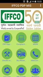 This is the first version of IFFCOPDP MIS app. Contains links to ERP approval, Complaint Reg, Vehicle reqn, Bus reservation, Intercom directory, Circulars, MD tweets, MGRR, Unsafe Act Photo, SiteHandOver certify, Forums, IFFCO YUVA, IFFCO videos etc.