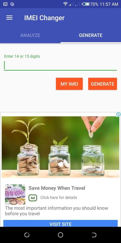Imei changer pro allows users to tweak their phone imei. Imei changer pro is also able to analyzeimei and generate IMEI.