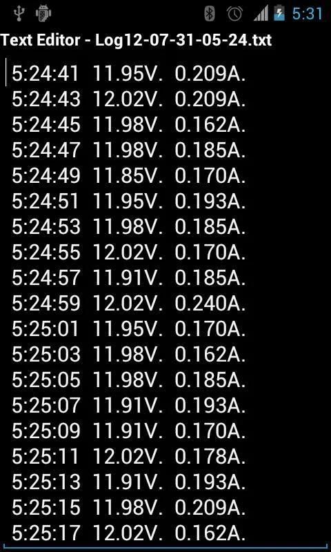 • सहेजें डेटा (वाल्ट और amp) एसडी कार्ड में फ़ाइल (फ़ाइल LogYY-MM-डीडी HH-mm.txt) प्रवेश करें
