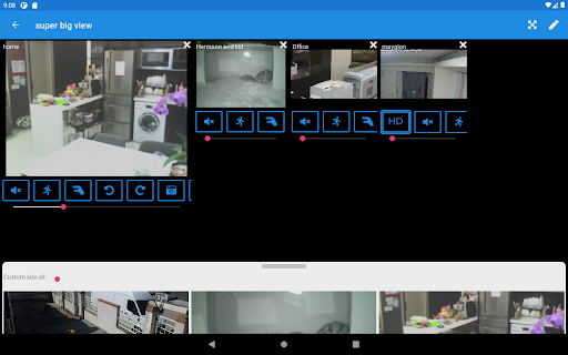 - मल्टी व्यू: पोर्ट्रेट और लैंडस्केप व्यू में एक स्क्रीन पर असीमित एकाधिक कैमरों की निगरानी करें।