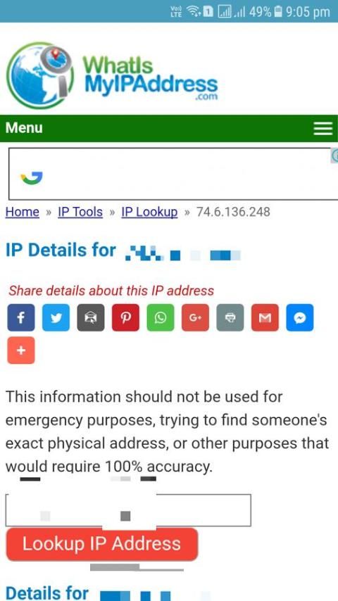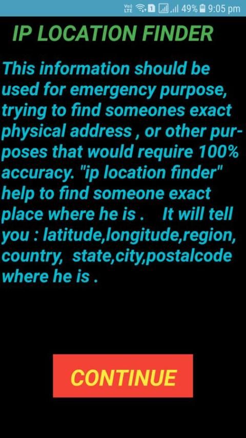 'आईपी स्थान खोजक' आपातकालीन प्रयोजन के लिए इस्तेमाल किया जाना चाहिए, किसी के सटीक भौतिक पता, या अन्य उद्देश्य है कि 100% सटीकता की आवश्यकता होगी खोजने की कोशिश।