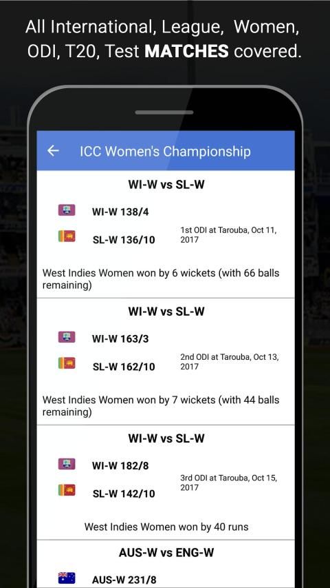 सभी अंतर्राष्ट्रीय, लीग, महिला, एकदिवसीय, टी 20, टेस्ट मैच कवर।
