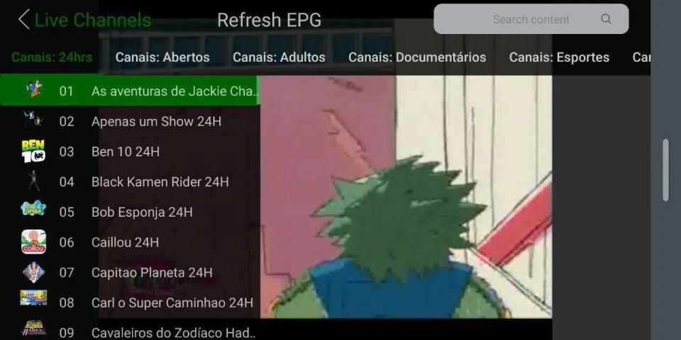 * EPG atual na playlist ao vivo