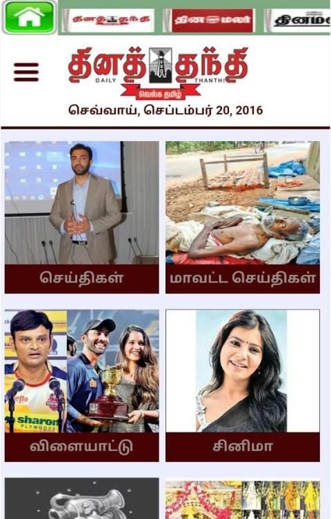 एक अनुप्रयोग पर दैनिक Thanthi, दिनामलार, पुथिया Thalaimurai, विकटन, Hotstar, मलाई मलार, DINAMANI तरह बेस्ट तमिल समाचार पत्रों से तमिल खबर पढ़ें।