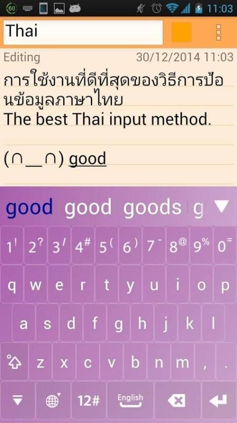 - स्मार्ट शब्द भविष्यवाणी (थाई और अंग्रेजी)