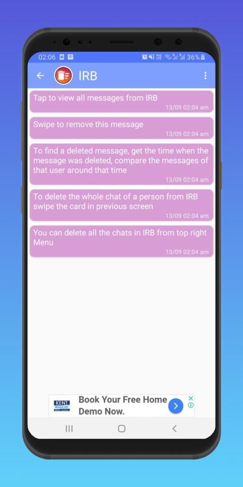 यदि कोई प्रेषक उन्हें हटा देता है तो संदेशों को सहेजने के लिए हमारा ऐप अधिसूचना श्रोता सेवा का उपयोग करता है। इसलिए, जिन संदेशों के लिए आपको सूचनाएं नहीं मिलती हैं, उन्हें पुनर्प्राप्त नहीं किया जा सकता है।