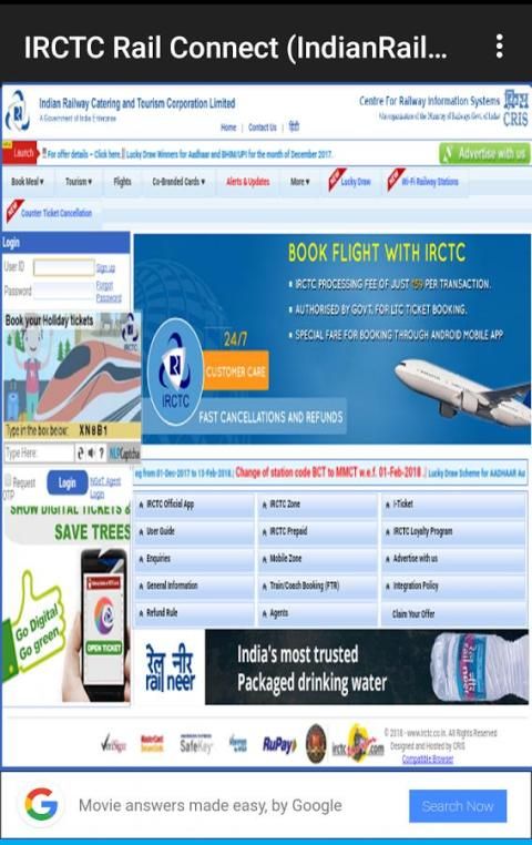 आईआरसीटीसी रेल टिकट अब बस स्वाइप करें और घसीटना, का चयन करें और बुक द्वारा सरल बनाया। नए शुरू "आईआरसीटीसी रेल कनेक्ट" एंड्रॉयड एप्लिकेशन इंस्टॉल करें और बुक एक रेलवे टिकट भारत में कहीं भी अपनी उंगलियों पर।
