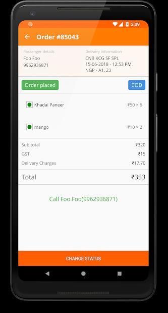 आईआरसीटीसी खाद्य विक्रेताओं विक्रेता और आउटलेट भागीदारों के लिए आईआरसीटीसी ई खानपान मंच पर कब्जा कर लिया आदेश के प्रबंधन के लिए एप्लिकेशन है। एप्लिकेशन दैनिक आदेश अद्यतन और भविष्य के आदेश प्रदान करता है। विक्रेताओं और दुकानों दोनों ग्राहकों और भागीदारों की सुविधा के लिए एप्लिकेशन के माध्यम से आदेश की स्थिति चिह्नित कर सकते हैं। यह ग्राहकों के लिए भोजन की समय पर डिलीवरी सुनिश्चित करने में मदद करेगा।