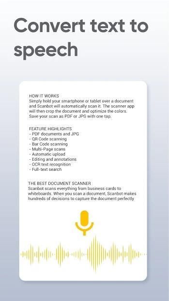 - The camera scanner image scanner application integrates convert text to audio function that is extremely convenient