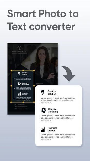 The picture scanner apps for free not only convert image to text but also scan image to PDF, read text out loud, edit and copy text.