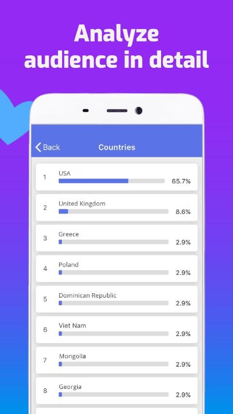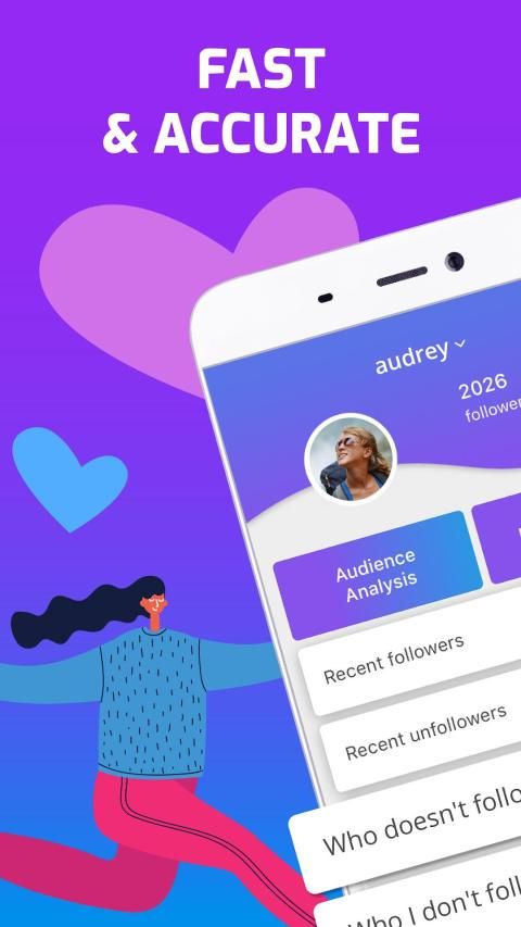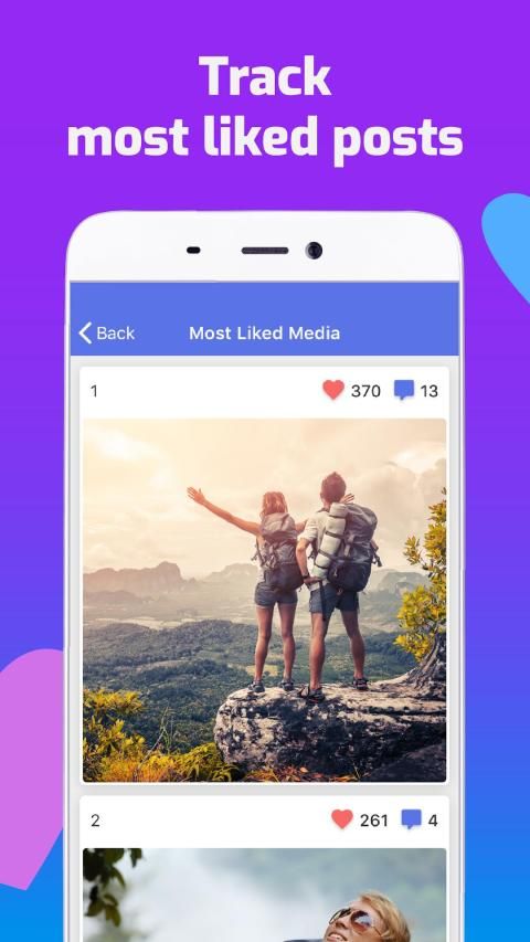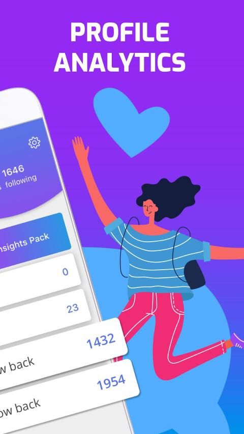 All analytics in one app. Get detailed reports, analyze and improve your profile. Follow & delete other people in just one click. Track popular publications and create amazing content that your followers will love. Find out who your best likers are!