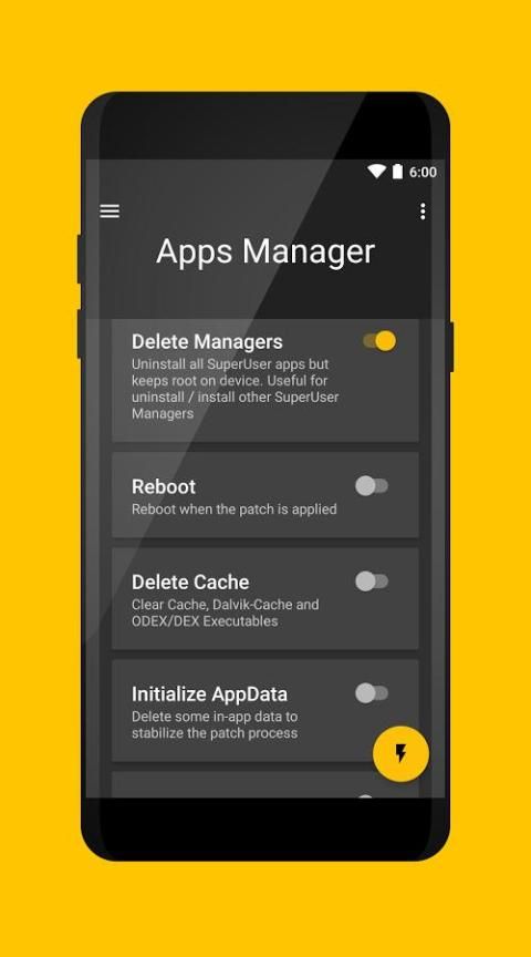 अनुप्रयोग प्रबंधक (सुपर उपयोगकर्ता प्रबंधकों फ़ाइल, हटाने का पैच, एक अनुप्रयोग से एक और सुपर उपयोक्ता के लिए स्विच)