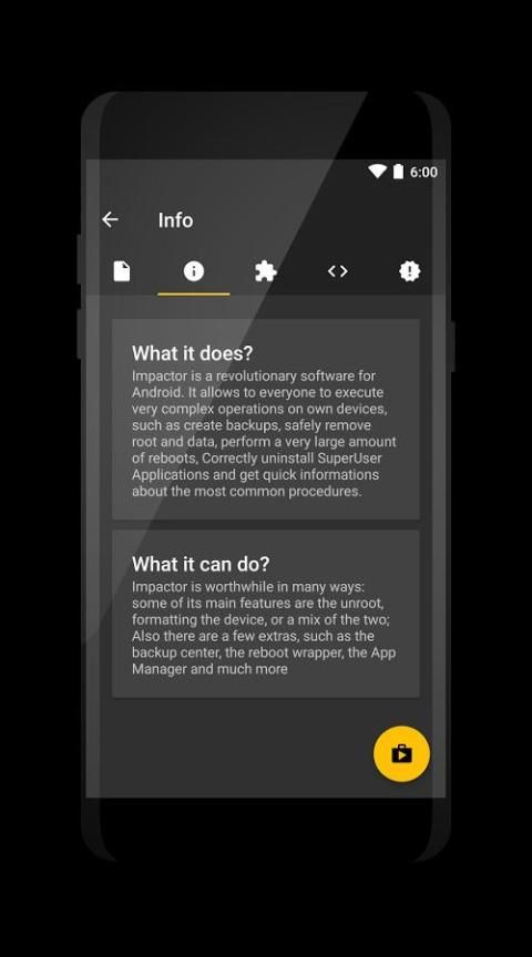 Impactor तोड़ना एक परम पीढ़ी के उपकरण बॉक्स अपने एंड्रॉयड डिवाइस के तोड़ देना है। क्योंकि यह उपयोगकर्ता एक स्थिर, व्यापक और तेजी से तोड़ना प्रदर्शन करने की अनुमति देता है यह सॉफ्टवेयर सभी एक दूसरे से अलग है। Impactor समझ सकते हैं जो सिस्टम के कुछ हिस्सों को बदल दिया गया है और क्या हटाने Xposed, बिजीबॉक्स, यूनिक्स उपकरण और Superuser अनुप्रयोगों से बहाल किया जाना चाहिए