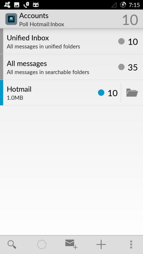 इनबॉक्स + IMAP, POP3 और Exchange (WebDAV के साथ) आधारित कई खातों का समर्थन करता है।