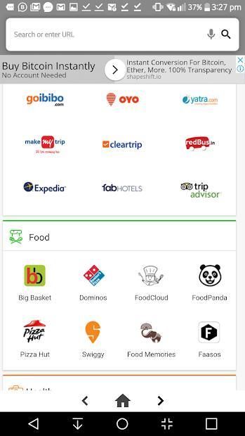 (2)Browser have upto 30 site directly show like facebook google