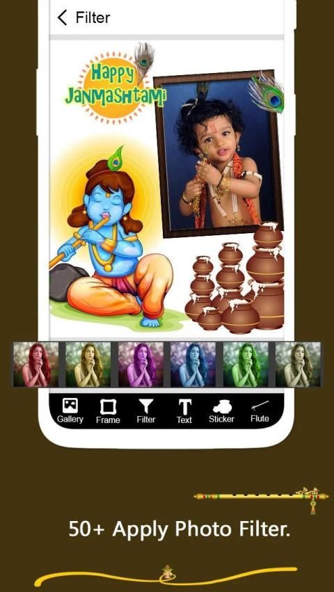 Create your Krishna birth Photo with awesome Photo Frame, Stunning Effects, Sticker and Beautiful filters using this app.