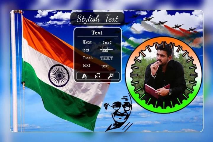 Indian Flag Photo Frames as soon as possible and beautify your photos. Great personalized frames for photos are waiting for you. Choose from variety of Photo Frames,Photo blending, Stickers,Republic day and Independence day messages.
