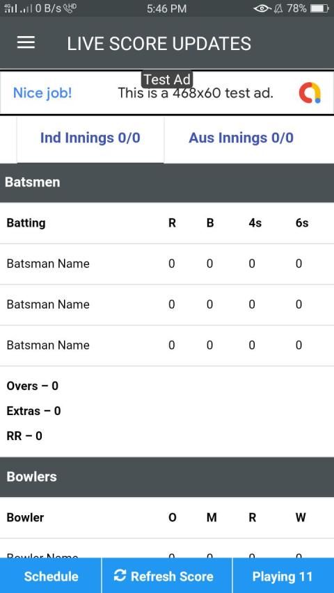 ✔ Bowlers live stats - Overs, Maiden Overs, Runs Given, Wickets.