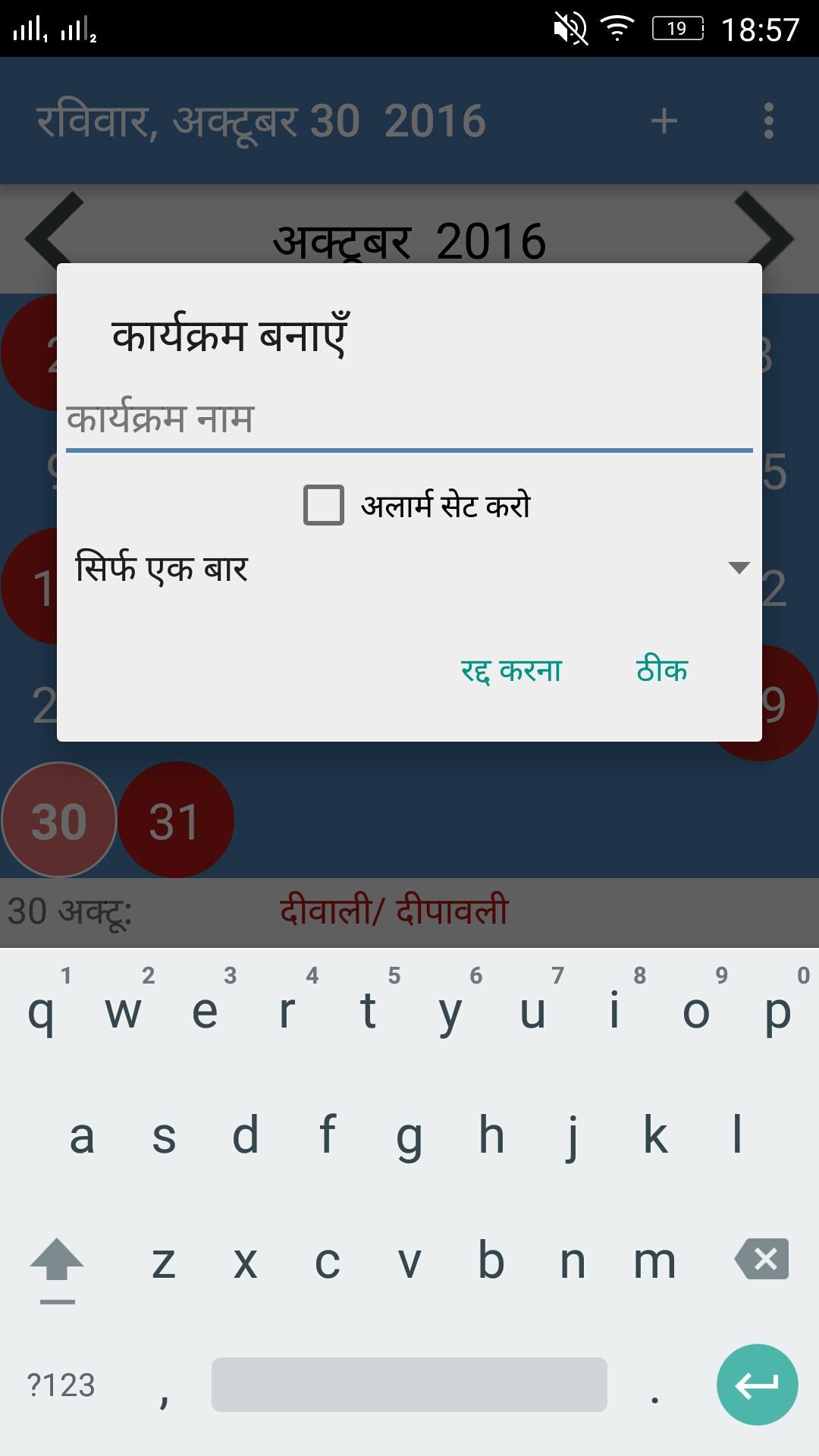 अलार्म के साथ मुक्त भारतीय कैलेंडर। भारत गीत गान (जन गण मन) खेला जाएगा जब अलार्म सक्रिय. भारत कैलेंडर सुविधाओं :
