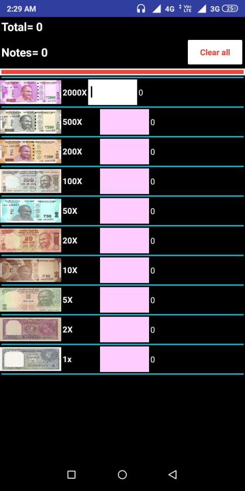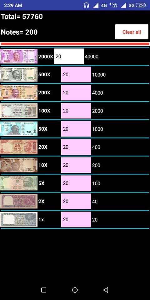 Tally Denominations Indian Cash Calculator data save App Total in word