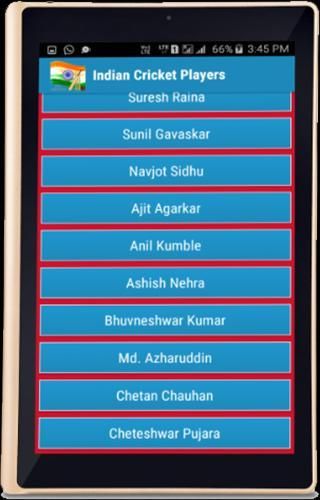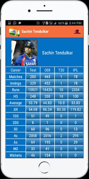 इस एप्लिकेशन को ज्यादातर सभी प्रसिद्ध और महत्वपूर्ण भारतीय क्रिकेट खिलाड़ी के बारे में एक जानकारीपूर्ण एप्लिकेशन है। इस एप्लिकेशन तक क्रिकेट प्रेमियों को आसानी से अपने पसंदीदा खिलाड़ी के बारे में जानकारी प्राप्त कर सकते हैं। बस किसी भी खिलाड़ी लोगों पर क्लिक करते हुए उनके बारे में सभी जानकारी प्राप्त कर सकते हैं। इस एप्लिकेशन को क्रिकेट मैचों (टेस्ट, वनडे, टी -20 और आईपीएल) के सभी विभागों के में जानकारी शामिल है। यह भी क्रिकेट खिलाड़ियों के प्रोफाइल (- जन्म, जन्म स्थान, ऊंचाई, बैट-कटोरा शैली आदि उदाहरण के लिए) भी शामिल है। खिलाड़ियों को पहली फिल्म विवरण भी क्रिकेट के सभी चार विभागों में उपलब्ध हैं। वहाँ सभी खिलाड़ियों और उपयोगकर्ताओं के वॉलपेपर के संग्रह के दूसरे खंड निर्धारित कर सकते हैं कि मोबाइल वॉलपेपर के रूप में चित्र।