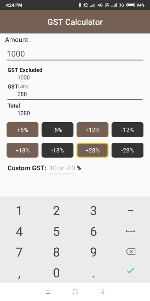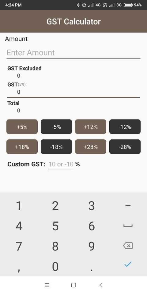 आप दर्ज राशि में 5% जोड़ने के लिए केवल 5% पर साधारण टैप कर सकते हैं और GST बहिष्कृत मूल्य का पता लगाने के लिए -5% पर क्लिक कर सकते हैं।