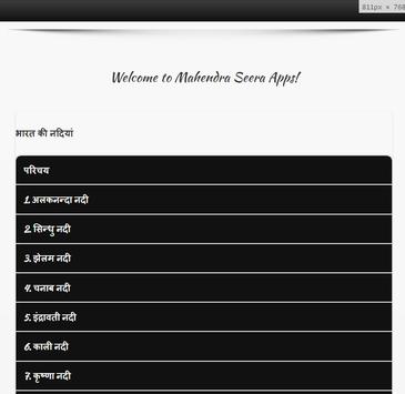 इस एप में भारत की सभी नदियों के बारे में विस्तार पूवर्क जानकारी दी गयी है जिससे आपके सामान्य ज्ञान की वृद्धि होगी और प्रतियोगी परीक्षाओं में आपके लिए लाभकारी होगी ! आशा है ये एप आपको पसंद आएगी !