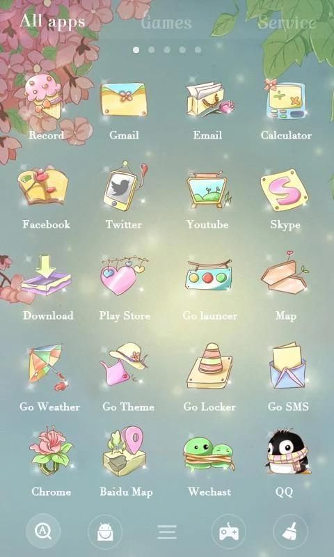 विशेष रूप से GO लांचर जेड के लिए डिजाइन, नाजुक एप्लिकेशन आइकन, वॉलपेपर, फ़ोल्डर और अनुप्रयोग दराज इंटरफेस प्रदान करता है। अभी जाओ और अपने Android स्मार्टफोन की एक पूरी तरह से नया बदलाव है।