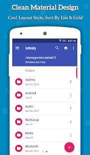 इन्फिनिटी फ़ाइल प्रबंधक भयानक और उत्कृष्ट रंगरूप प्रदान करने के साथ हर Android मोबाइल समर्थन के लिए एक मानक संस्करण है।