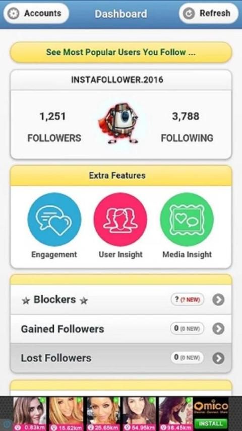 एप्लिकेशन InstaFollow प्रयोग के रूप में तो नजर रखने और अपने Instagram खाते के सभी को पता है। यह तेजी से, सही और इतना सहज है।