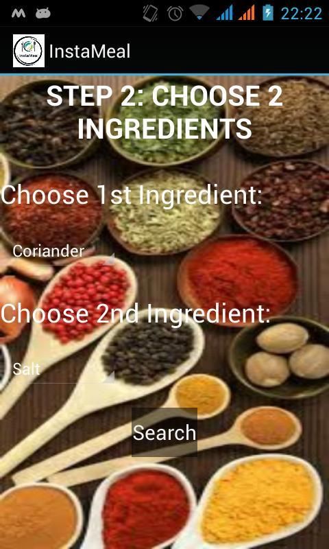 इस इंटरैक्टिव आवेदन भी अद्वितीय और उपयोगी बनाने के लिए, मैं सामग्री उपयोगकर्ता द्वारा चयनित 2 पर आधारित एक नुस्खा प्रदर्शित करने के लिए यह प्रोग्राम किया।